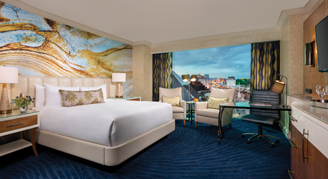 This room is the ideal blend of comfort and style featuring views of The Strip. Bold statement furnishings and plush textiles offer an experience that you'll love to call home during your stay.