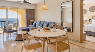 Suites feature a partial-ocean view or an ocean view. Additional amenities include a bottle of wine upon arrival, indoor whirlpool tub, kitchen, living and dining area, separate bedroom, turn down service and a large terrace.