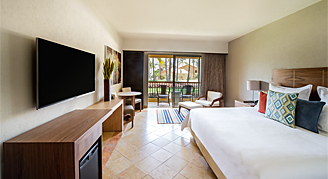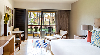 Suites features a partial-ocean view or an ocean-view. Additional amenities include an outdoor Jacuzzi on the terrace, a bottle of champagne and chocolate covered strawberries, one romantic dinner on the beach, one couple's massage in the room, unlimited access to the spa wet areas, one-day beach cabana use and turn down service.