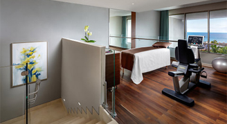Additional amenities include a Jacuzzi on the terrace, an exercise bike, a juice bar, organic soaps, a Nikken Kenko pillow and comforter, an aromatherapy kit and a personal spa concierge to provide counsel on a wide-variety of spa treatments.