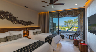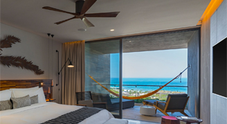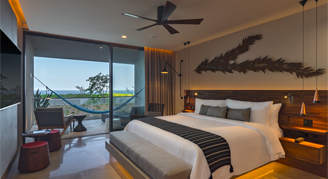 Rooms feature modern Mexican design elements, showcasing local Huanacaxtle wood and marble textures. All rooms include Artisan Butler Service, which offers an elevated level of personal assistance from assisting with check-in to making reservations.