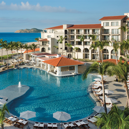 This beachfront all-inclusive resort is terraced into the desert hillside and features contemporary Mexican ambiance, free-form pools, a variety of restaurants, six bars and lounges, a kids’ club and a spa featuring unique wine-therapy treatments.