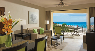 Suites feature a partial-ocean view or an ocean view. Additional amenities include a living and dining area.
