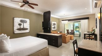 Contemporary Caribbean décor enhances these elegant suites. Select suites feature an open-air shower, an infinity plunge pool or direct access to a lazy river that connects to the main pool.