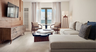 Suites feature an ocean view. Additional amenities include a separate living and dining area.