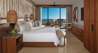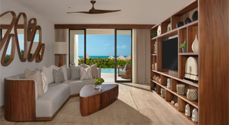 Suites feature an ocean view. Additional amenities include a living room and direct access to a pool.