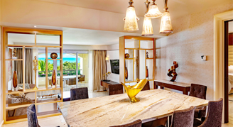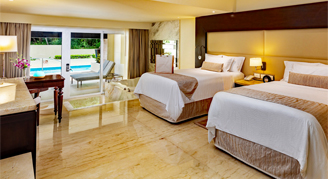Additional amenities include direct pool access, a mini-bar stocked with drinks and snacks and a liquor dispenser.