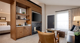 Like a breath of fresh air, luxuriate in the expansiveness and upscale exclusivity of the Privado One-Bedroom Suite. Located next to the golf course and lagoon, Privado guests have a separate private entrance and lobby, exclusive access to the Privado Pool, and access to Well & Being Spa. Inspired by desert-modern design, these suites feature a gas fireplace with a large sitting area and a coffee café featuring a high-end Nespresso machine. Gather at the round table for four or on your private patio or balcony and enjoy your own private bedroom separate from the main living space. Privado suites are ideal for curating an escape for families and friends.