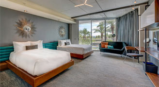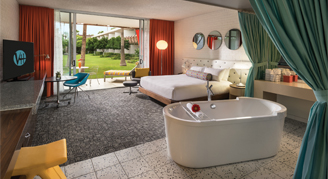 Enjoy views of OH Pool or OHasis Pool from your room. Rooms also feature floor-to-ceiling glass, and separate bathtub and shower.