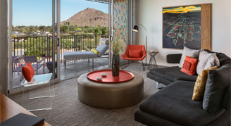 Enjoy views of Downtown Scottsdale and the OH Pool or Camelback Mountain from your private balcony. Rooms also feature an oversize bathtub, separate shower and private bar.