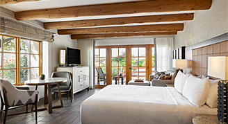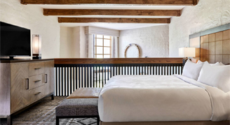 Casita features a contemporary southwest design and resort views from a personal balcony or a patio. Relax in comfort with a larger guest room, king bed and luxury bedding and amenities.