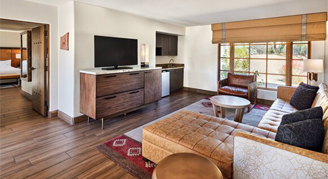 Enjoy spectacular views in the One-Bedroom Suites with a separate living room and bedroom, personal balcony or patio, and thoughtfully appointed luxury bedding and amenities for a truly special stay.