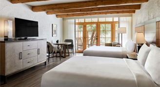 Casita features a contemporary southwest design and resort views from a personal balcony or a patio. Relax in comfort with a larger guest room, two queen beds and luxury bedding and amenities.