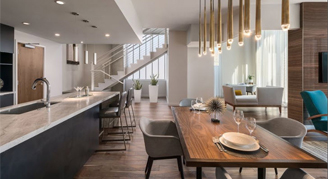 The One-Bedroom Suite offers a full kitchen and open views of the living area giving a spacious feel. The master bedroom sets the tone to rest easy with a private patio leading to stunning views where you can enjoy the sunrise and sunset. In-suite laundry is available in all units.