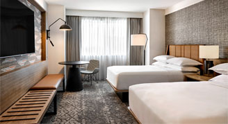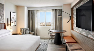 Rooms are located on floors 18 - 31 and feature modern amenities and a task table that converts to a stand-up desk.