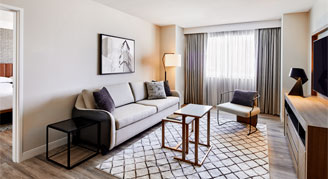 Experience timeless comfort and residential appeal in this one-bedroom suite. Enjoy stunning views of the Phoenix skyline from the living room while relaxing.