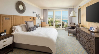 Villas feature two bedrooms; one king bed and one king bed in each, a separate living area, full kitchen, indoor and outdoor fireplaces, balconies in each room and partial views of the Pacific Ocean.