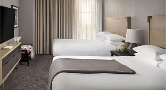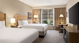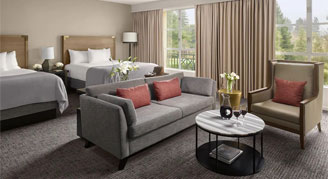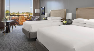 Relax and stretch out in this room with 500 square feet of space, two queen beds and a spacious sitting area with a sofa. Enjoy a modern, spa-inspired bathroom with a walk-in shower and luxury bath amenities.
