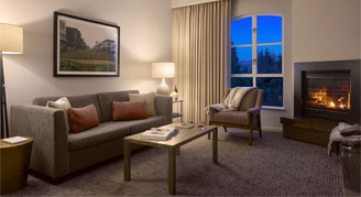 Find relaxation in the Sonoma Suite featuring 700 square feet of space and one king bed as well as a separate living room with a sofa bed. Enjoy a spacious bathroom with luxury bath amenities and a rainfall shower.