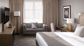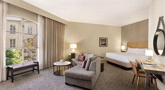 Relax and stretch out in this room with 500 square feet of space, one king bed and a spacious sitting area with a sofa. Enjoy a modern, spa-inspired bathroom with a walk-in shower and luxury bath amenities.