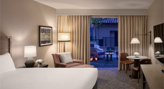 Enjoy views of the resort’s interior courtyards with lush landscaping in the Courtyard-View Room, featuring 325 square feet of space, one king bed and a desk.