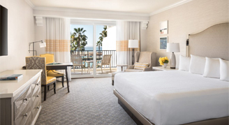 Rooms feature views of Huntington Beach from the private balcony or patio, and an oversized workstation.