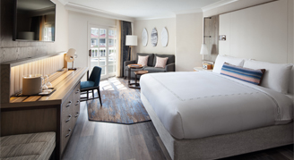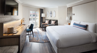 With dramatic views of the Pacific Ocean, end each day with the beautiful Southern California sunset just outside your window. Ocean-View Rooms are equipped with all of the comforts of home, including a flat-screen TV with premium movie channels, a Nespresso Machine, Tivoli radio (Bluetooth capable) and a spacious work desk.