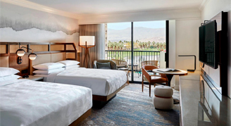 All 884 guestrooms and suites have been thoughtfully tailored to provide a private retreat within the expansive Desert Oasis – the place to relax and recharge your body and mind. Indulge in luxurious accommodations complemented by mountain-inspired murals and stunning mountain views.