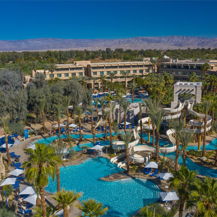 Located in sunny Palm Desert, this family-friendly vacation resort features spacious villa accommodations, seven pools, and exciting resort amenities for guests of all ages.