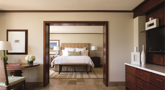 Suites feature one king bed, a separate living area, an additional powder room for guests and views of the resort.