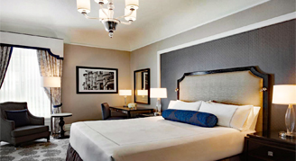 Pairing classic ambiance with modern amenities, accommodations feature a marble bathroom, large desk and sitting area. Rooms are located in the Tower or Main Building and are equipped with high-speed internet, elegant linen ensembles, pillow top beds and coffee makers.