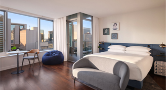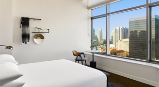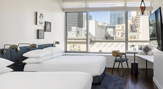 Rooms feature a large rainforest shower, oversized windows that open four inches for fresh air and city views.