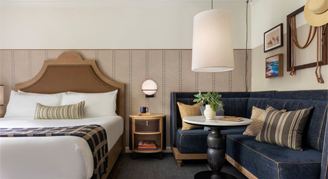 Rooms feature views of the garden and one California king bed on 100% Turkish cotton linens, broad windows, HD 55" Smart TVs with local and premium channels, Netflix and Hulu. Fresh Amenity Collection includes shampoo, conditioner, lotion and two terry bathrobes.