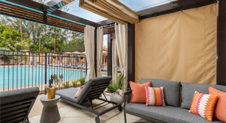 Rooms feature a furnished Cabana and walk out pool access, one California king bed on 100% Turkish cotton linens, HD 55" Smart TVs with local and select premium channels, Netflix and Hulu. Fresh Amenity Collection includes shampoo, conditioner, lotion and two terry bathrobes.