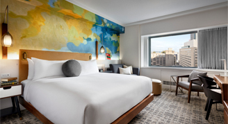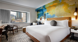 Corner room located between the 4th and 16th floors with a beautiful city view, our Deluxe view rooms are designed with a contemporary decor and a vintage 1960's flair reminiscent of the hotel's and Montreal's glorious past. These 315 square foot guest rooms are located at the very end of the floor.