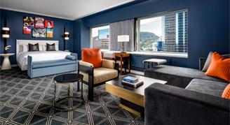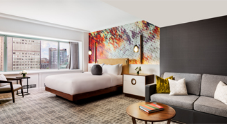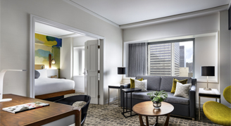 Located between floors 4 - 17, these junior suites are fully renovated with a brand new design blending contemporary decor with vintage 1960s flair, reminiscent of the hotel's and Montreal's glorious past. Suites are ideal for families and long stays, and consist of a bedroom with a full bathroom, separated by pocket doors into a cozy sitting area with a sofa bed and powder room, and can accommodate up to four people.