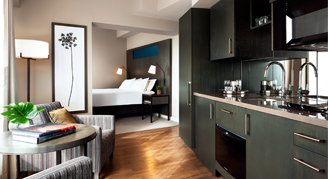 Their spacious and stunning Tower Preferred suites are designed with extended stays in mind, allowing you to relax and unwind in style. One of the standout features of this room is the stunning corner location, which offers incredible views of the city and lake. With generous space, this suite features a plush king-size bed, large-screen HDTV, chic bathroom, and a kitchenette with a mini-fridge, microwave oven and dishwasher. Located away from the elevators and with plenty of space, this suite Is the perfect base for you to enjoy your escape away from home.
