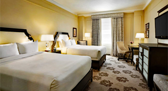 Enjoy elevated city views on higher floors, 10 - 13. One of the most popular rooms, the Deluxe Rooms feature elegant decor, sleek furnishings, and modern amenities. This Deluxe Room with two queen beds includes a bathtub, ideal for families (up to 4 guests).