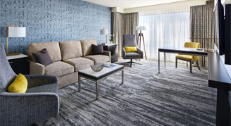 Rest comfortably and take in skyline views from the floor-to-ceiling windows. Suites feature a Hyatt Luxury Pillowtop Mattress, a separate sitting area and one-and-a-half baths.
