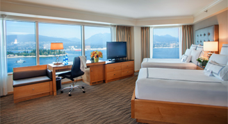 These rooms boast breathtaking views of the Vancouver Harbour, Stanley Park and North Shore Mountains.