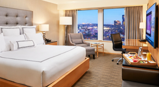 These rooms are located at the corners of the building, they offer a breathtaking view of Coal Harbour and North Shore Mountains. These rooms also have either a beautiful chaise lounge or sofa for an added guest comfort.