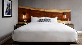 An intimate abode perfect for couples, the elegantly designed space boasts a luxurious King bed, fireplace, and modern bathroom with spa shower. Situated on the higher floors of the hotel, the aptly named Alpine Suites offer breathtaking views of the surrounding mountain peaks.