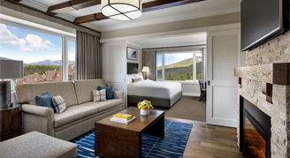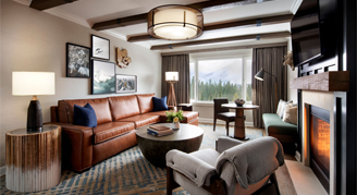 Fairmont Gold Rooms provide luxurious surroundings including gas fireplace and upgraded amenities including a four piece bathroom, soaker tub and views of Rainbow Mountain or Woodlands.