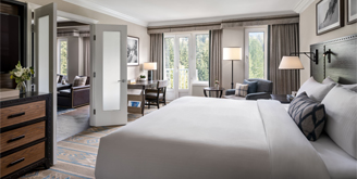 Fairmont Gold Junior Suites feature an elegantly-designed bedroom and casual sitting room complete with gas fireplace and a four-piece marble bathroom with a soaker tub and upgraded hotel amenities. The separate sitting room provides both privacy and comfort.