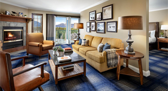 Deluxe Slopeside View Rooms feature a cozy sitting area, the most popular view of Whistler Mountain and the slopes of Blackcomb.
