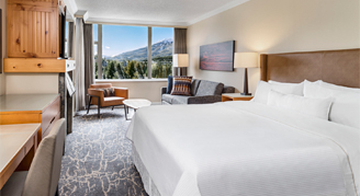 Take in mountain views from this spacious connecting room. The Two-Bedroom Mountain-View Deluxe Suite is comprised of a Deluxe Studio Suite with an interior connecting door to a One-Bedroom Suite.
