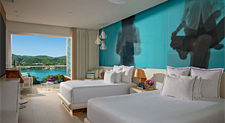 Suites include two queen beds, a bathroom with a double vanity, marble shower and soaking tub. A private terrace or balcony with Whirlpool offers spectacular views of the bay.