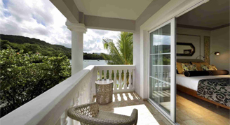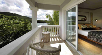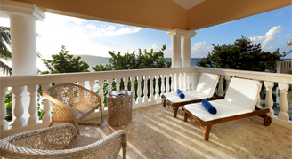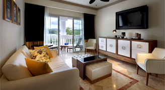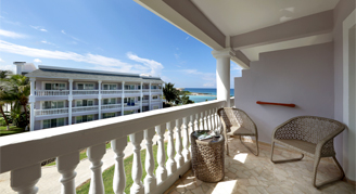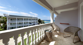 Rooms feature a view of the ocean, a bedroom and separate living room.