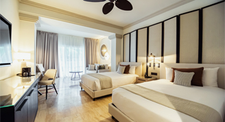 Rooms feature two inter-connecting rooms, Junior Suite combined with a Suite.