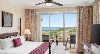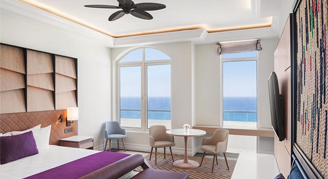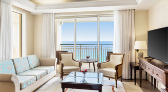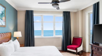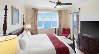 Suites feature an oceanfront view. Additional amenities include a mini-fridge stocked with beer, soda and water; a coffee/tea brewer with premium roast choices, a large flat screen with HDTV, an in-room safe, individual climate control and a large sitting area.